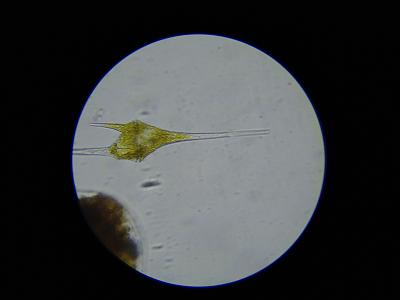 プランクトンネットを投げます 採集地の内濠 こんなふうに取れました