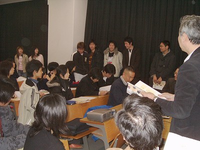 座りながら聞く方は,席が後ろだと文字が見えにくく難しかった。自分は