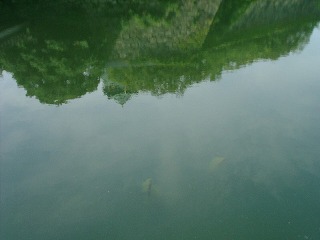ボルボックス 濠の様子です ネットを投げた様子 ブルーギル(分かりますか)