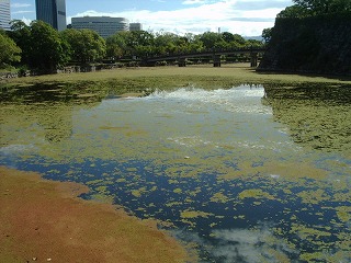 アカウキクサと水質の関連を調べるために、大阪城外濠でも水質調査を行いました。