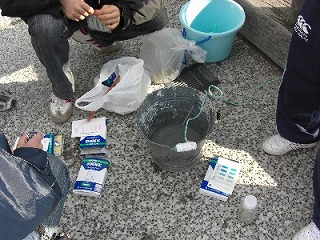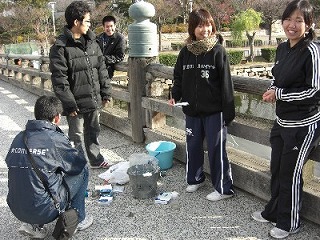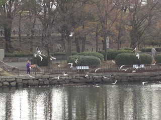 大阪城のようす カモメが群れ 調査の様子(No.1)です