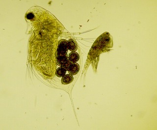 コドネラ ミジンコの間のテマリワムシ 越冬卵をはらむミジンコ