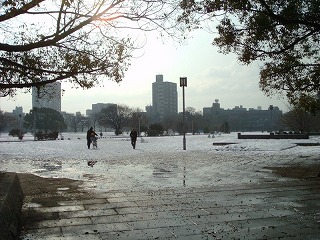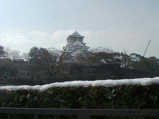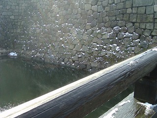 大阪城のようす 難波の宮の積雪 石垣にも積もっていました
