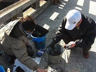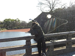 | 内濠の様子 | ユリカモメ | 水質調査の様子 | 網を投げる様子 |