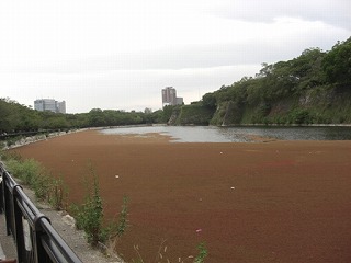 9月末の雨が原因と思われますが、内濠の水が茶色く濁っていて、透明度も著しく低下していました。