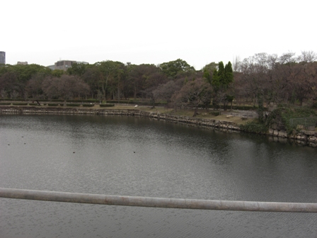 大阪城内濠の水温が10度を下回りました。内濠に渡り鳥が十数羽飛来するのを確認しました。