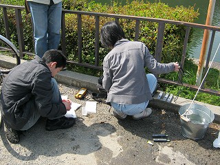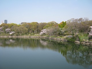 | 内濠の様子(東) | 内濠の様子(西) | 大阪城と桜 | 調査の様子 |