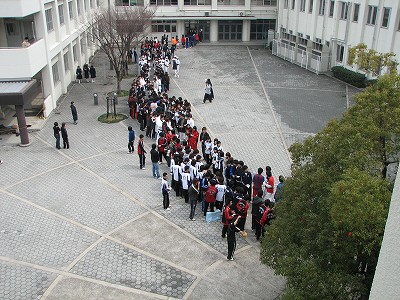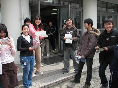 花道をつくって、新入生を歓迎し、勧誘のビラを配りました。